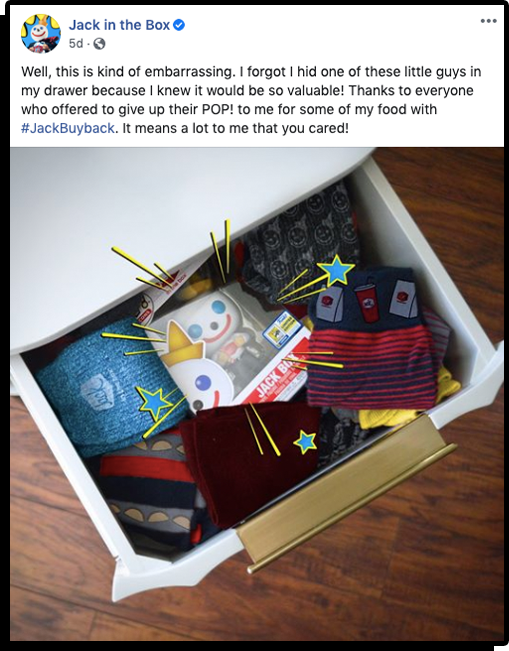 For 2020 Comic Con @Home, Jack in the Box partnered with Funko POP! to create a con-exclusive Jack Box figure. But, amidst all the excitement and preparation, the boss man Jack himself wasn’t able to get one of his own figures! So, we pleaded to his fans for some help, and they did not disappoint.